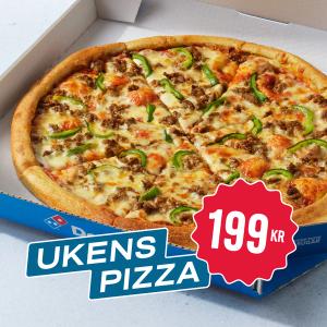 Kjøttdeig, jalapeños, mais, rødløk, nacho chips, tacokrydder, mozzarella & pizzasaus.
