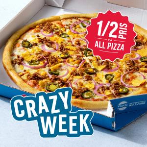Minced meat, jalapeños, corn, red onion, nacho chips, taco spice, mozzarella & pizza sauce.