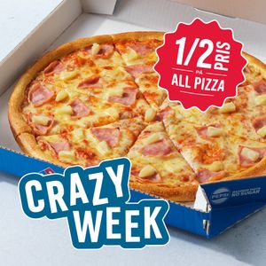 Pepperoni, ham, pineapple, mushrooms, mozzarella & pizza sauce.