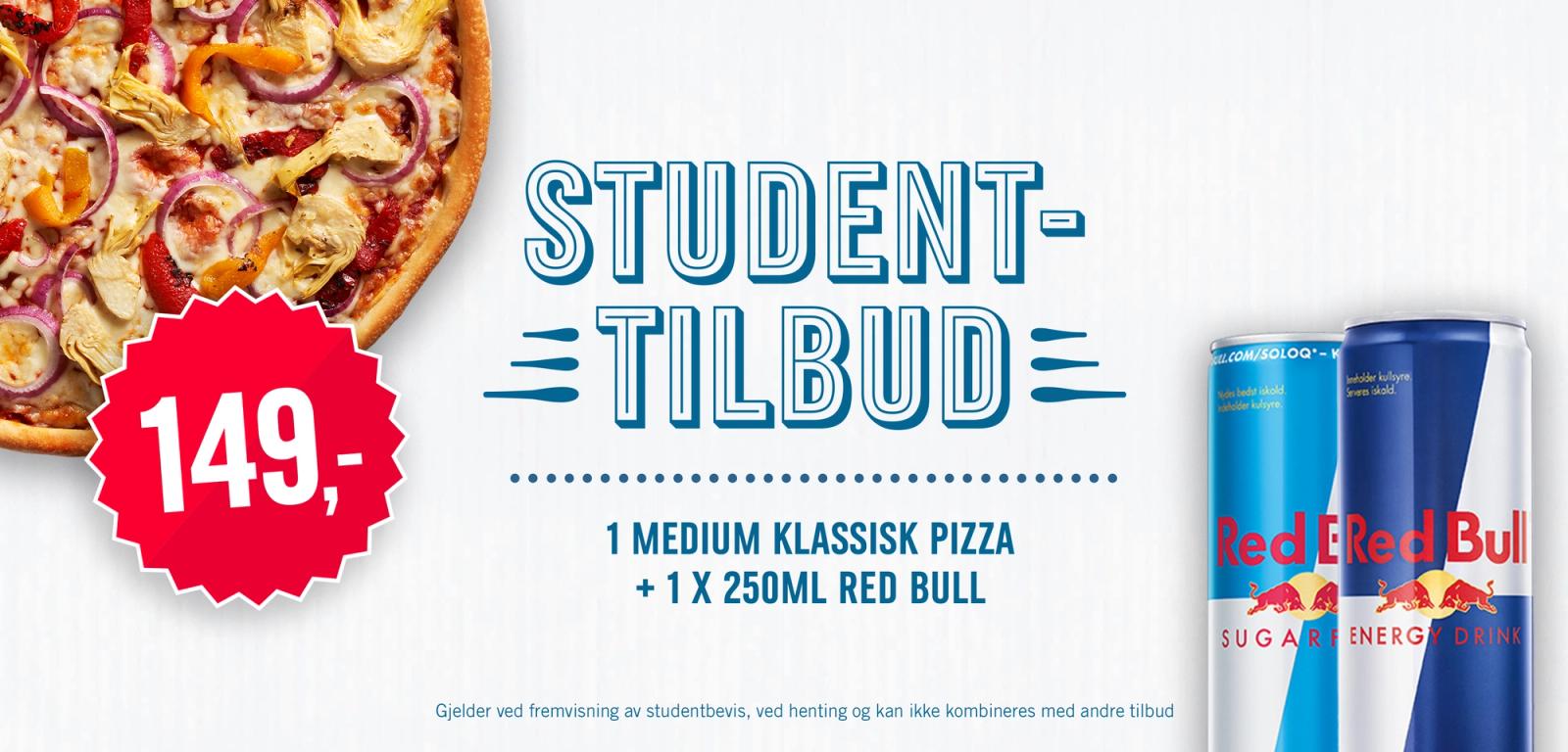Together with Red Bull we have a great offer on medium classic pizza all of September.